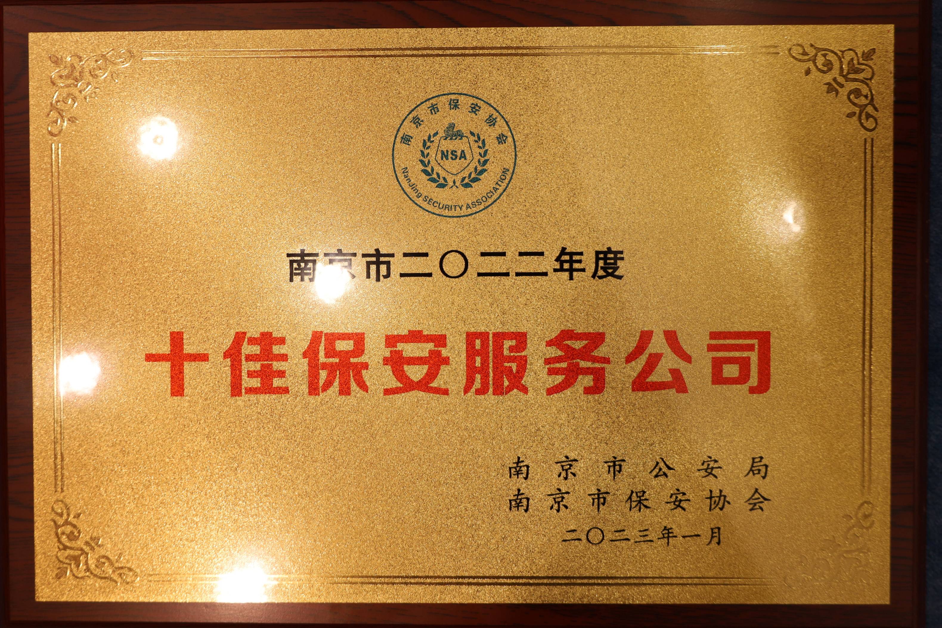 南京市2023年度十佳保安服务公司