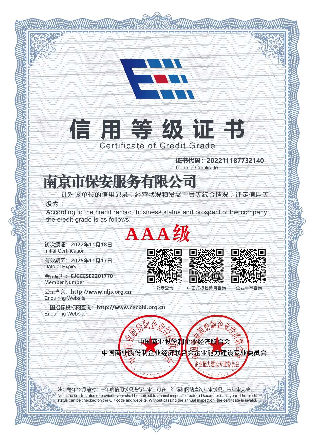 信用等级证书