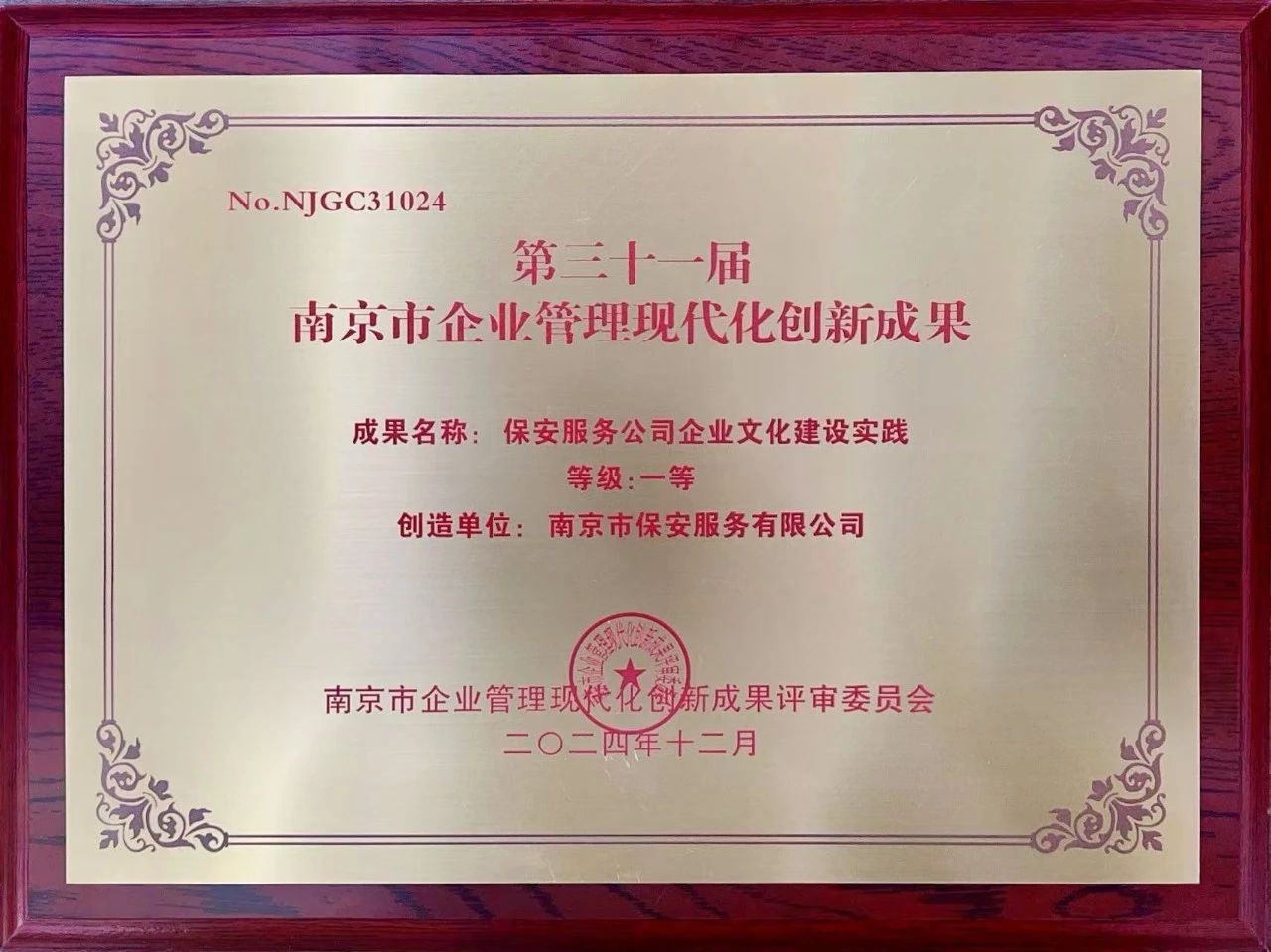 在12月19日召开的南京市企业联合会、南京市企业家协会七届四次理事会暨2024“两会”年会上,心博官方网页版凭借其卓越的管理创新成果——《保安服务公司企业文化建设实践》,荣获第31届南京市企业管理现代化创新成果一等奖。