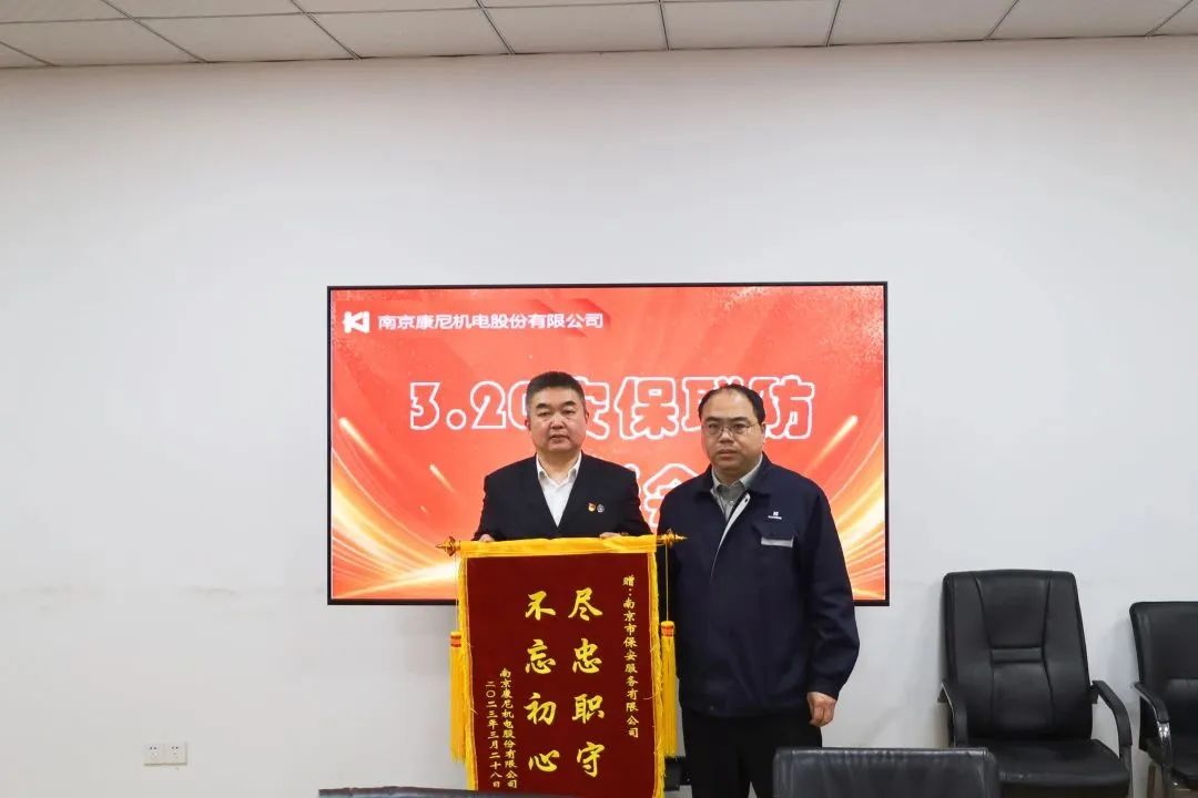 表彰会由康尼集团运营保障部高级主管李凤阁主持。会上,康尼精机综合部尹海军部长宣读了对我司的感谢信,手写的感谢信带着浓浓的情意和温暖,字里行间表达着对我司安保服务的充分肯定和真挚谢意。康尼集团运营保障部方伟国部长宣读了奖励决定,对勇擒窃贼事件中南京保安高度警惕、认真负责的工作态度,和敢于亮剑、善于亮剑的担当精神予以了高度赞誉,向受表彰的6名保安员颁发了荣誉证书和奖金,向公司授予了“尽忠职守 不忘初心”锦旗2面,以表感谢!
